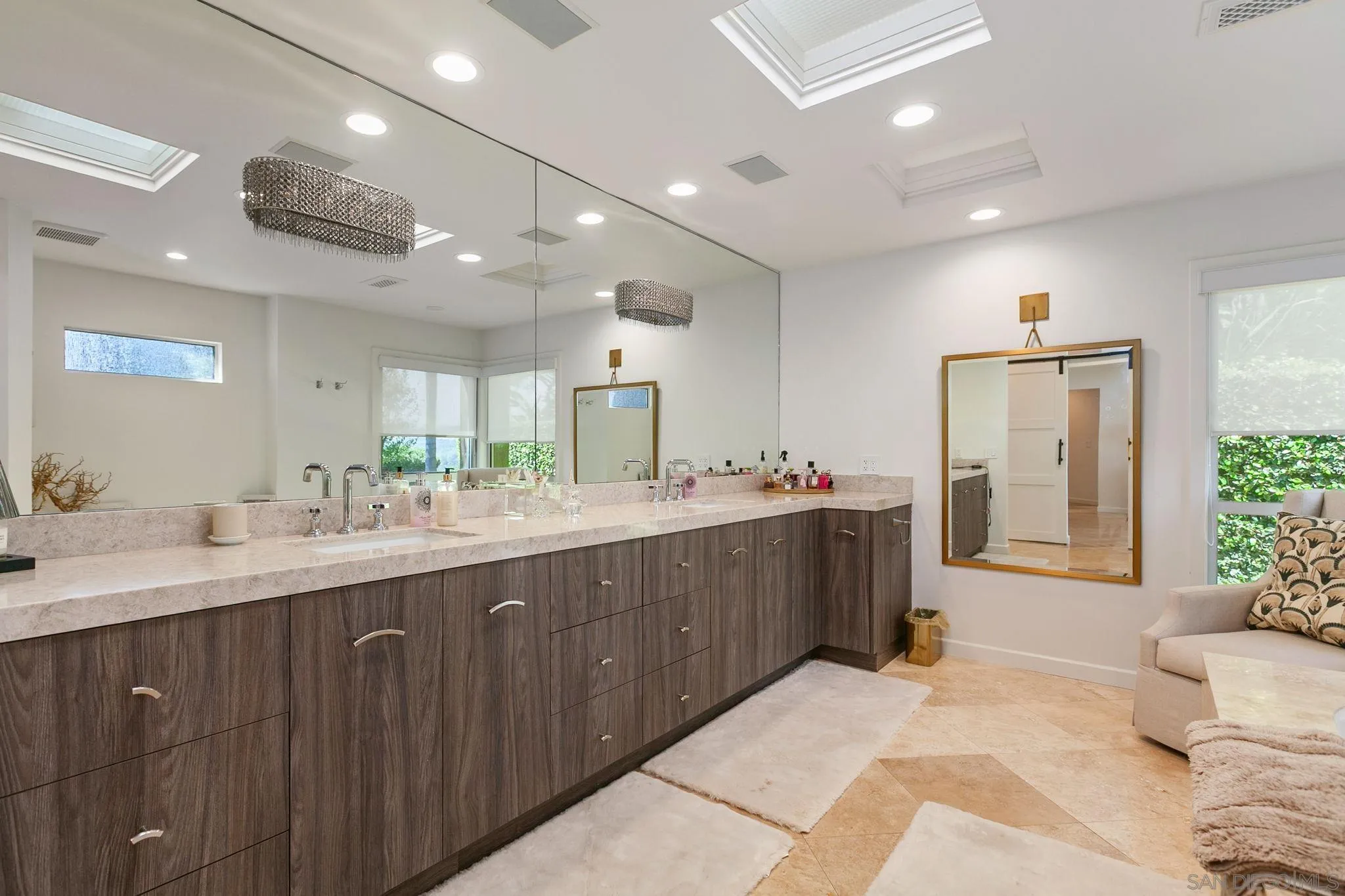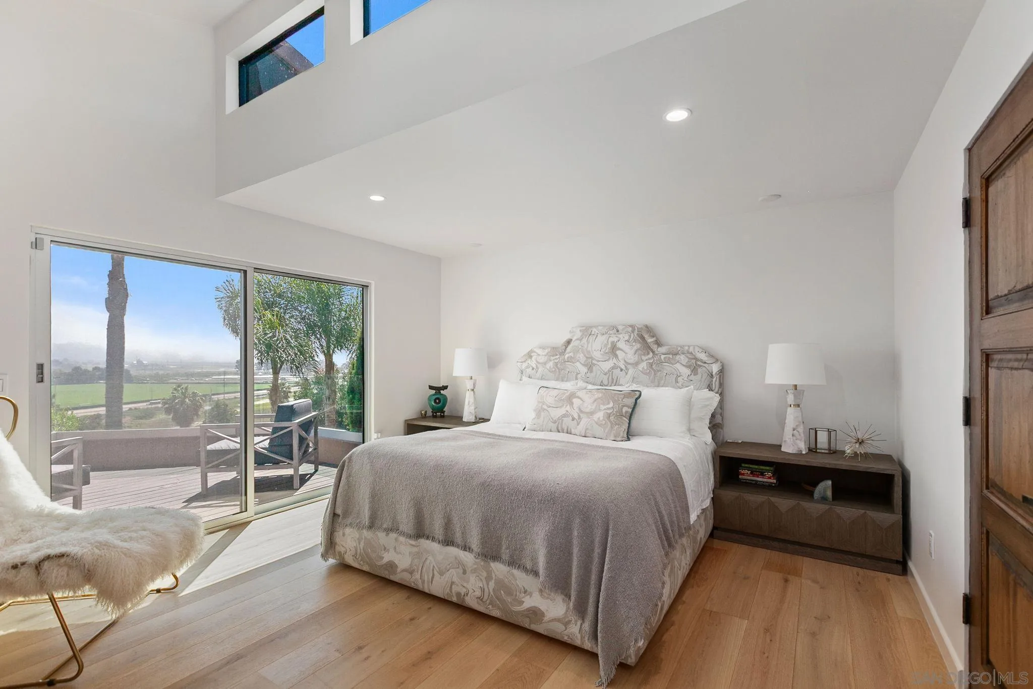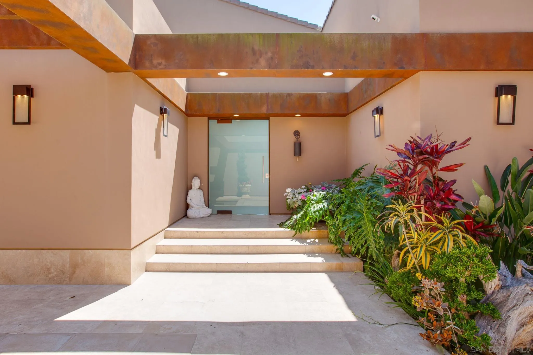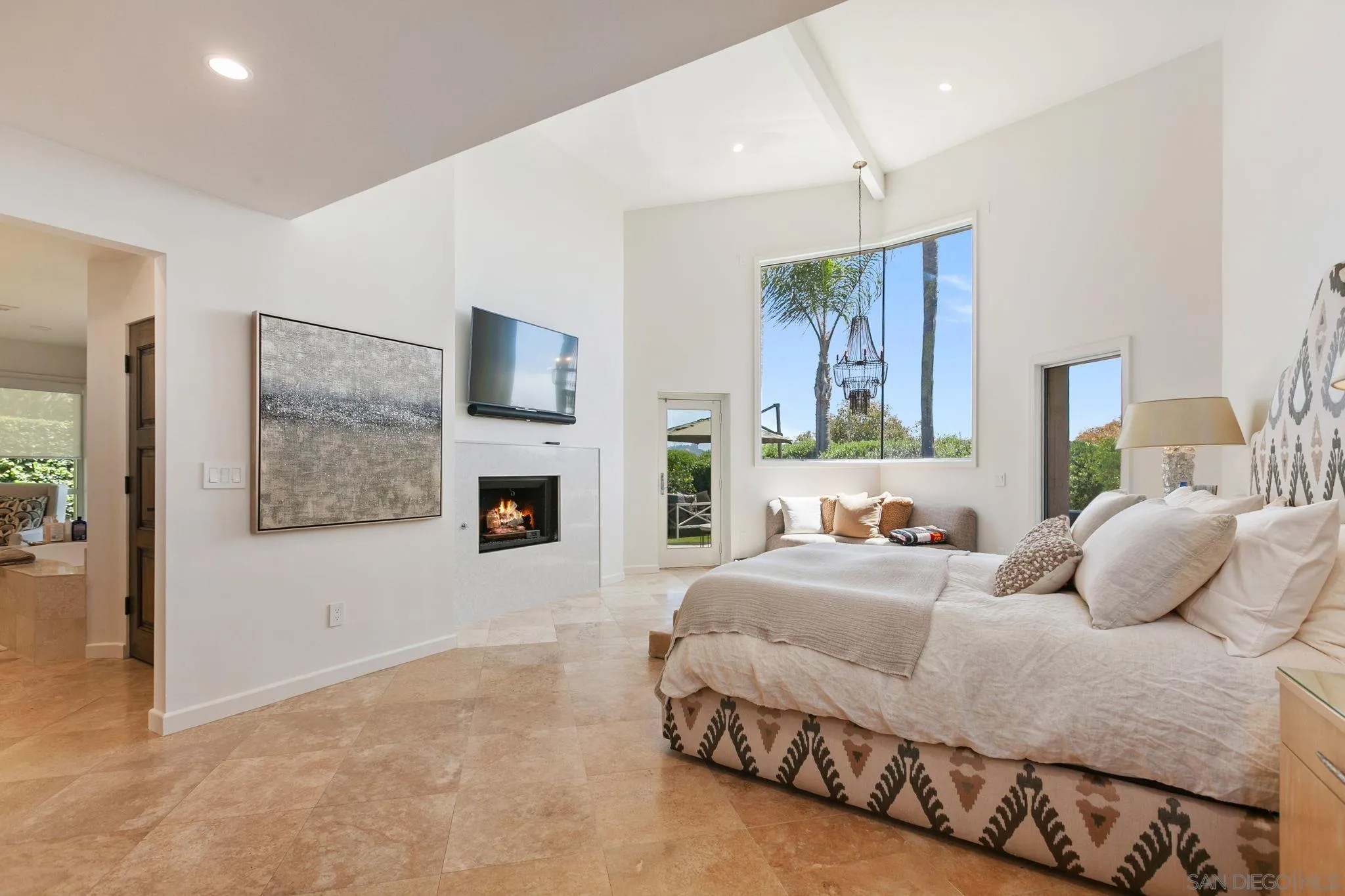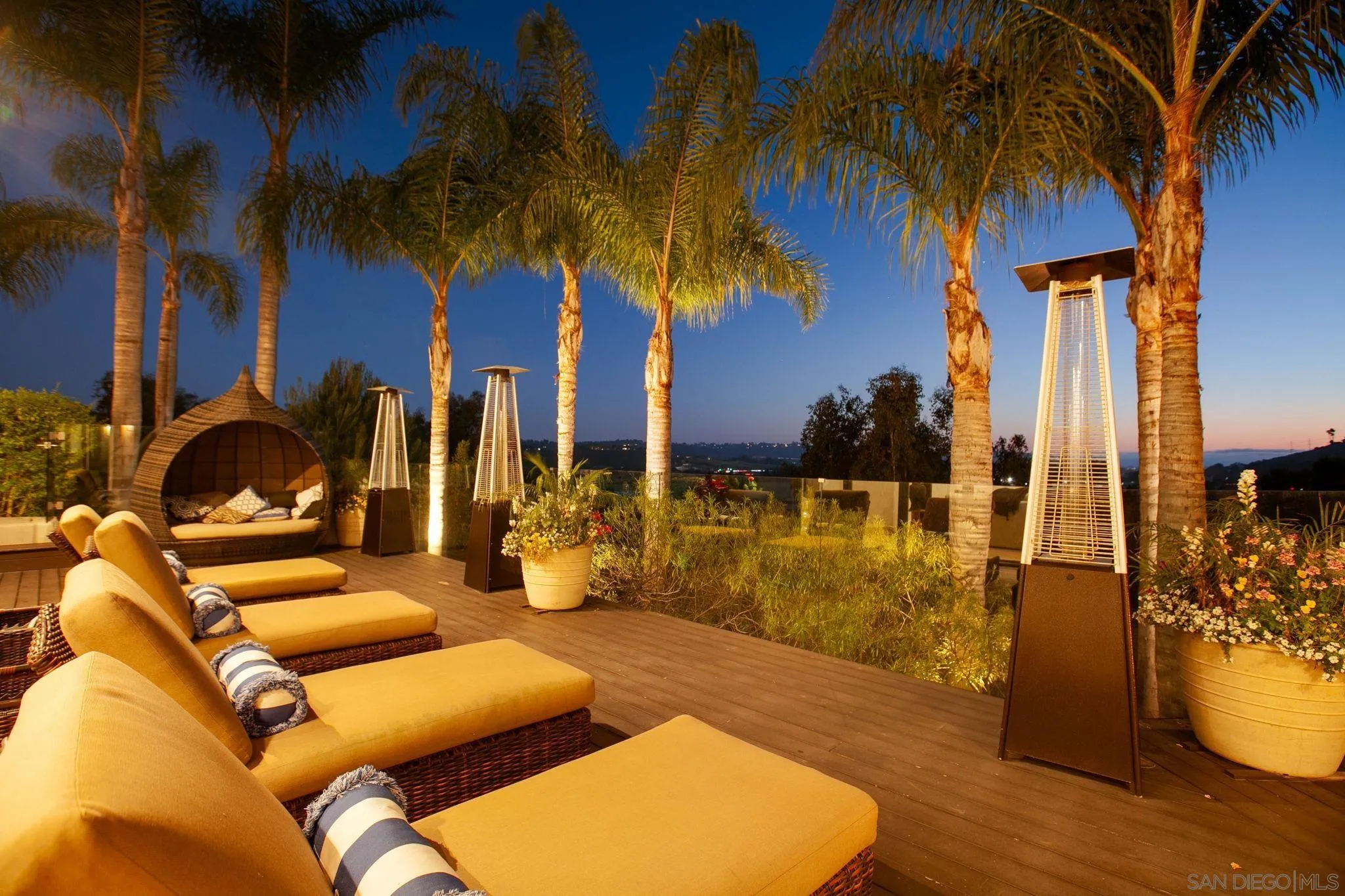 Welcome to 14817 Arroyo Rosita - a luxurious, resort-style contemporary home nestled in one of Rancho Santa Fe's most coveted and private enclaves. Perched on one of the most Westerly streets in the community, this exceptional property offers panoramic views over the Del Mar Polo Fields and out to the Pacific Ocean. Meticulously upgraded with over $300,000 in recent enhancements, this home now features a state-of-the-art sound, lighting, and security system, delivering unparalleled comfort, convenience, and peace of mind. Smart home technology powered by Door Bird, Apple TV, Screen Logic (pool control) and Sonos offers full control at your fingertips. Inside, soaring cathedral ceilings and bi-fold glass doors create a seamless indoor-outdoor flow from the expansive great room to the private deck and entertainer's dream backyard. The chef's kitchen is outfitted with top-tier Viking and Sub-Zero appliances, while elegant Travertine and wood flooring add warmth and sophistication throughout. The luxurious primary suite boasts a custom walk-in closets, private garden patio, dedicated office, and spa-style bath complete with sauna. Outdoor living shines with a sparkling pool and spa with a tranquil waterfall feature, built-in BBQ, pizza oven, and surround sound - all perfectly positioned to enjoy breathtaking sunsets and ocean breezes. Located on a gated street, and just a short walk to the renowned Market restaurant, this home sits at the crossroads of Rancho Santa Fe and Del Mar - offering the best of both worlds in location and lifestyle. Potential for an ADU.