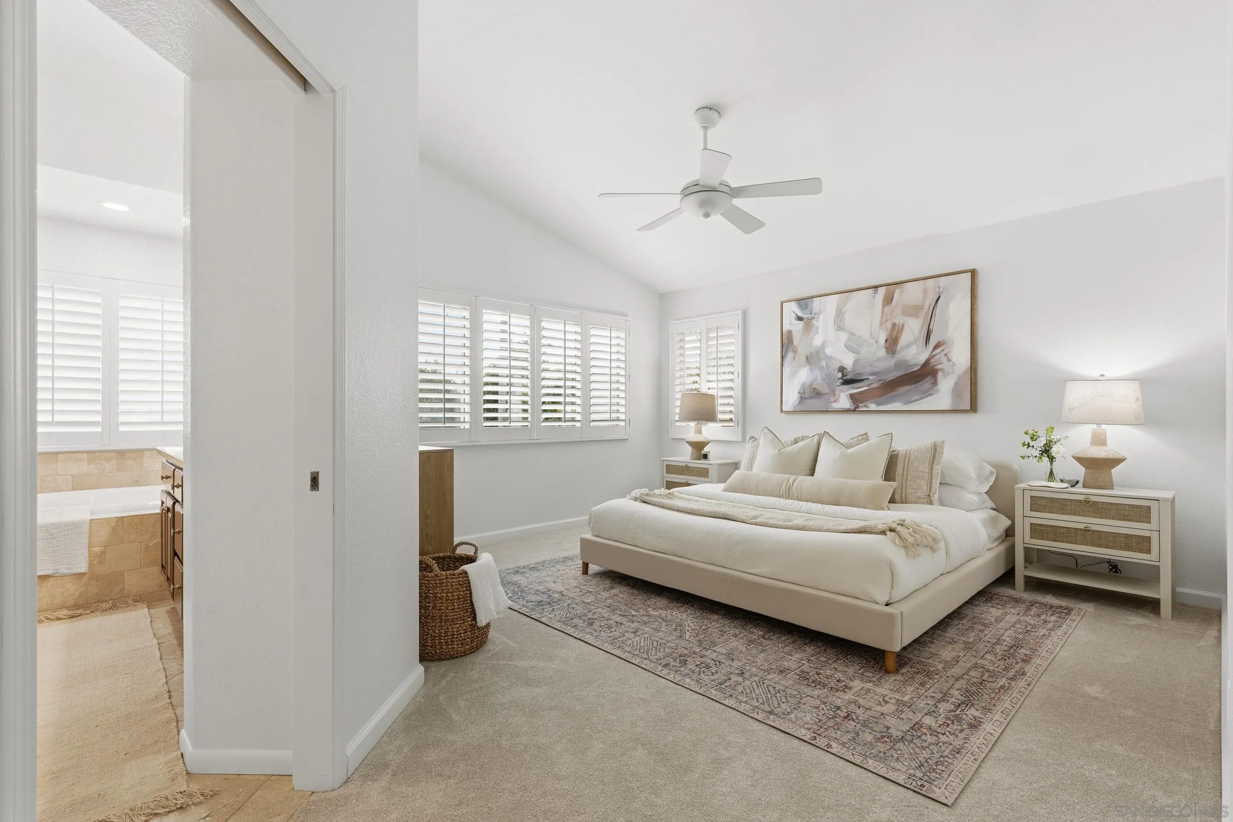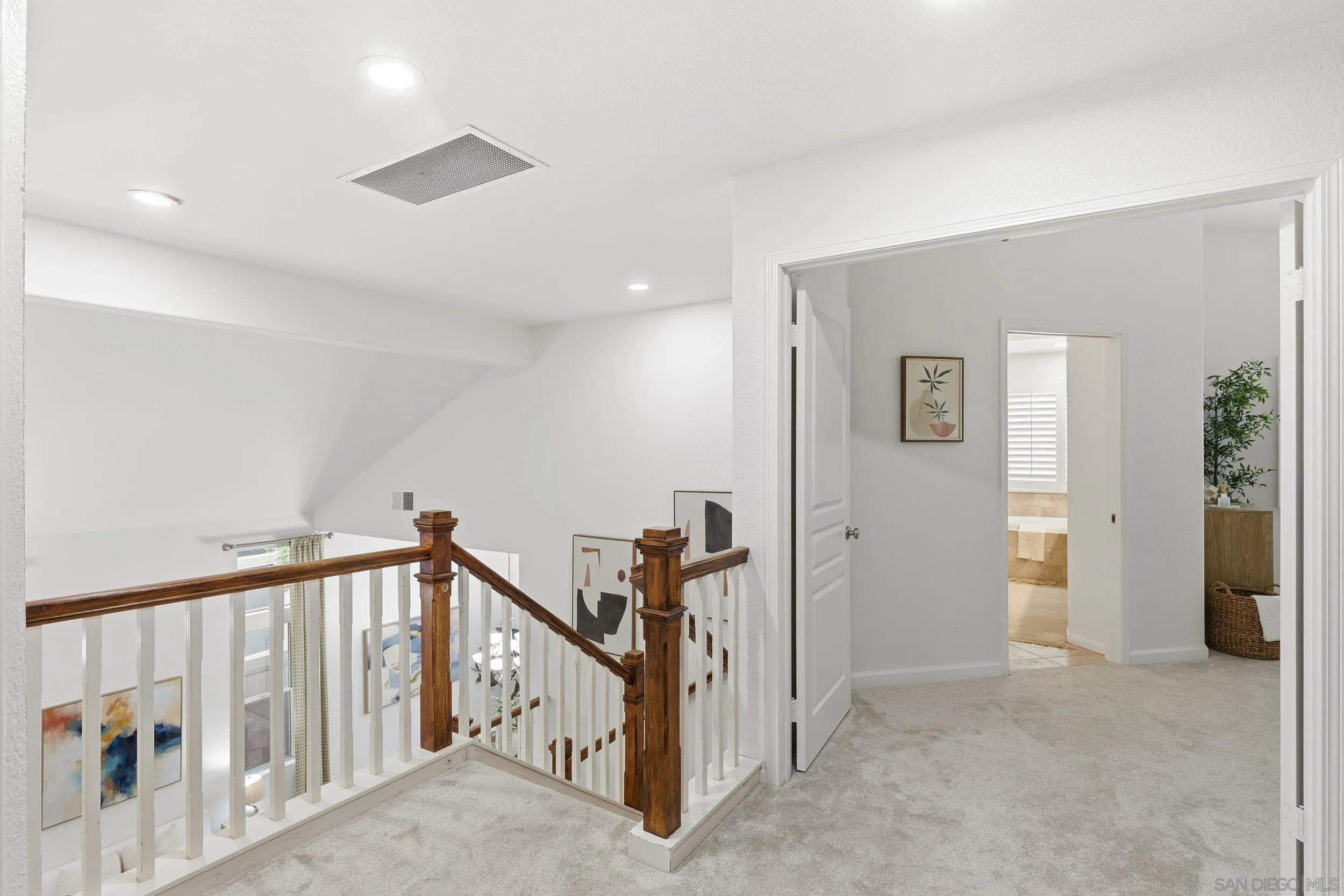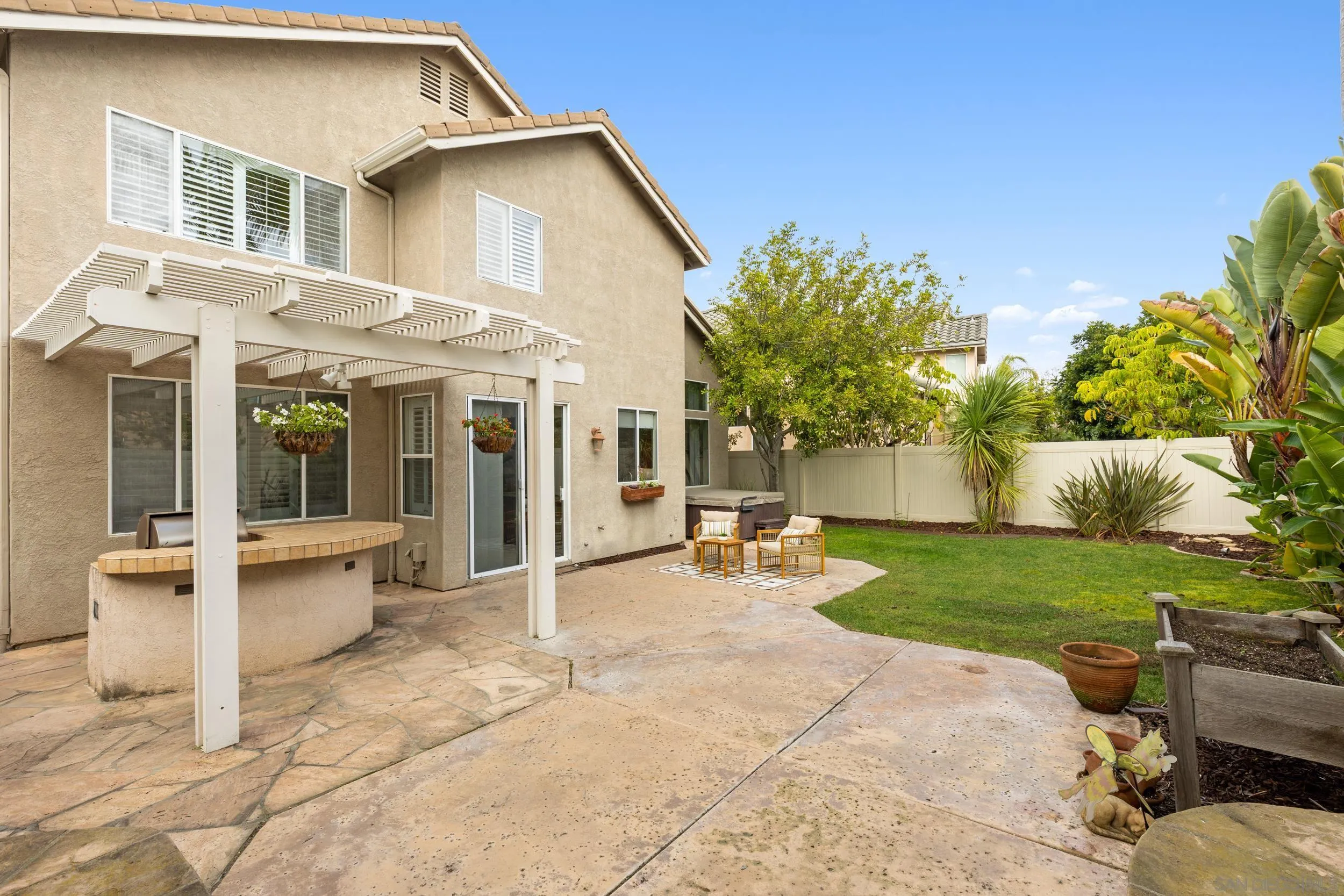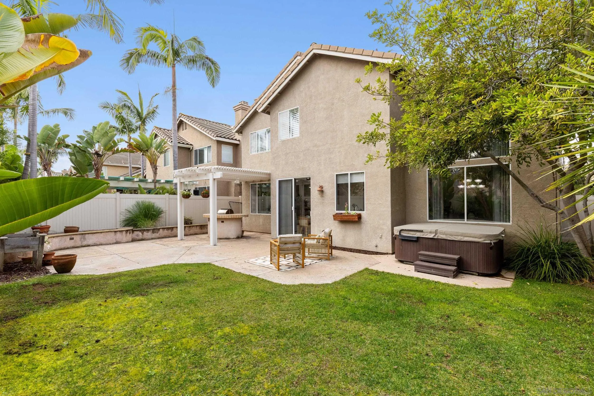 Beautifully upgraded Carmel Valley home featuring fresh paint, new flooring, and high ceilings throughout. This functional layout offers 4 bedrooms + an office and 2.5 bathrooms, with a spacious formal dining room, cozy living and family areas, and a kitchen equipped with stainless steel appliances. The large primary suite includes dual vanities, a walk-in closet, a walk-in shower, and a soaking tub. Upstairs also offers a shared bathroom with double sinks and three additional bedrooms. The well-maintained backyard is perfect for entertaining, featuring a jacuzzi, built-in BBQ + bar, and plenty of space to relax. Further highlights include a 2-car garage with an additional converted workout space and convenient downstairs office. All in a prime location--walking distance to Ashley Falls Elementary, parks, green belts, trails, and shopping, minutes to Del Mar Beach, with easy access to the 56 and 5 freeways. No HOA fees. Mello Roos fee ends next year!