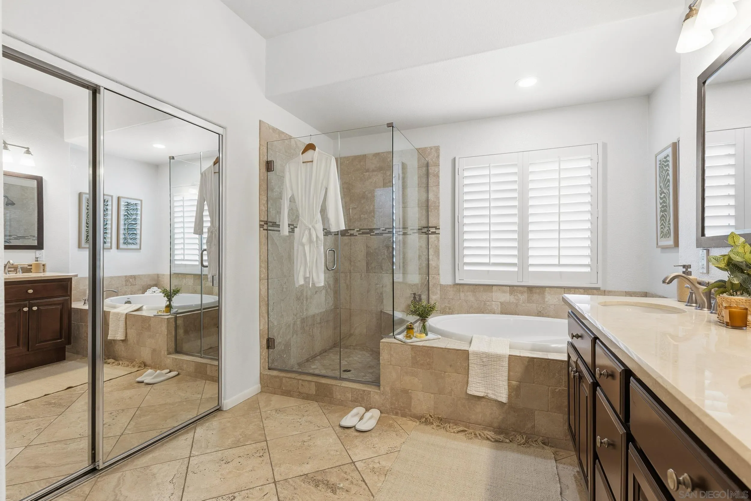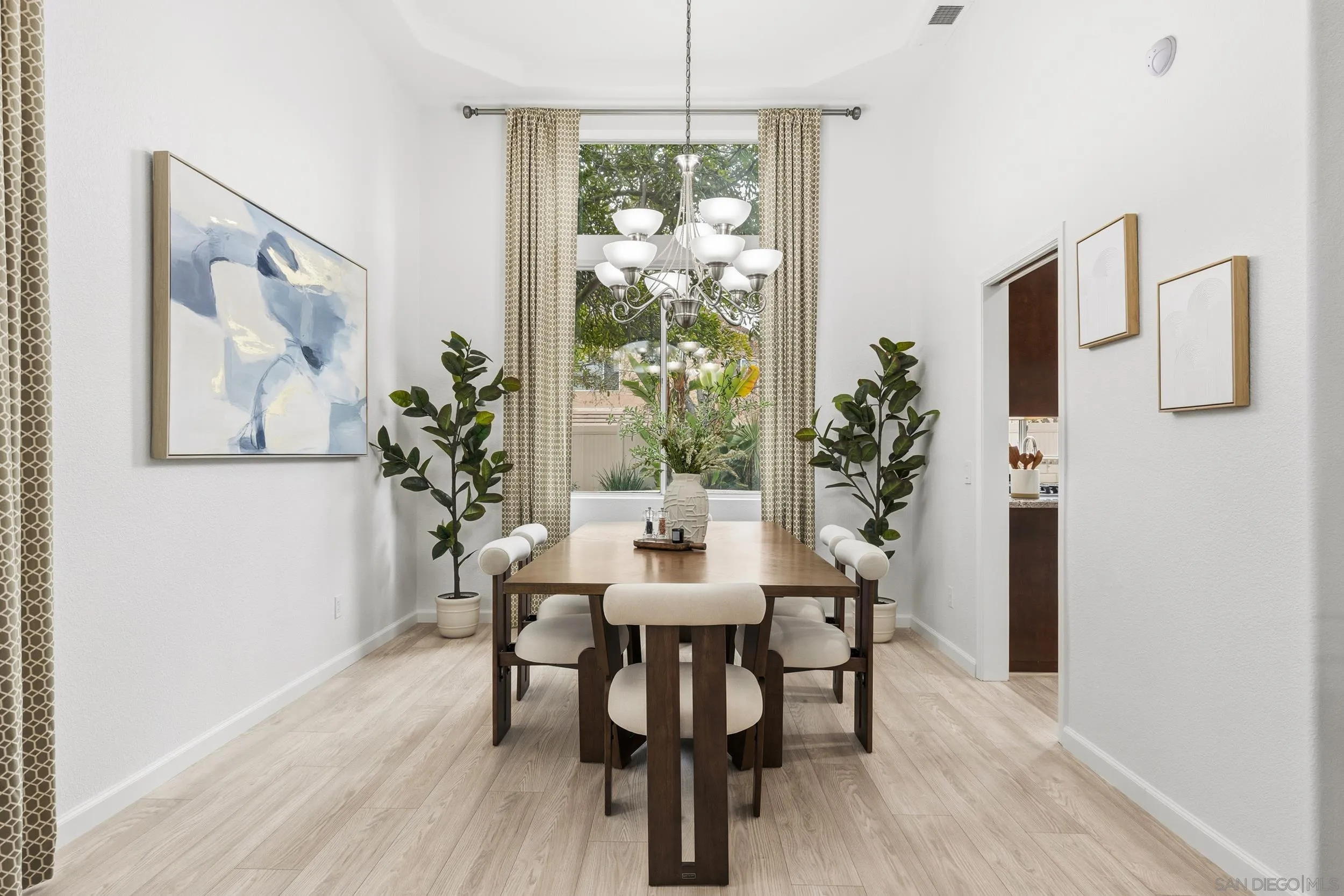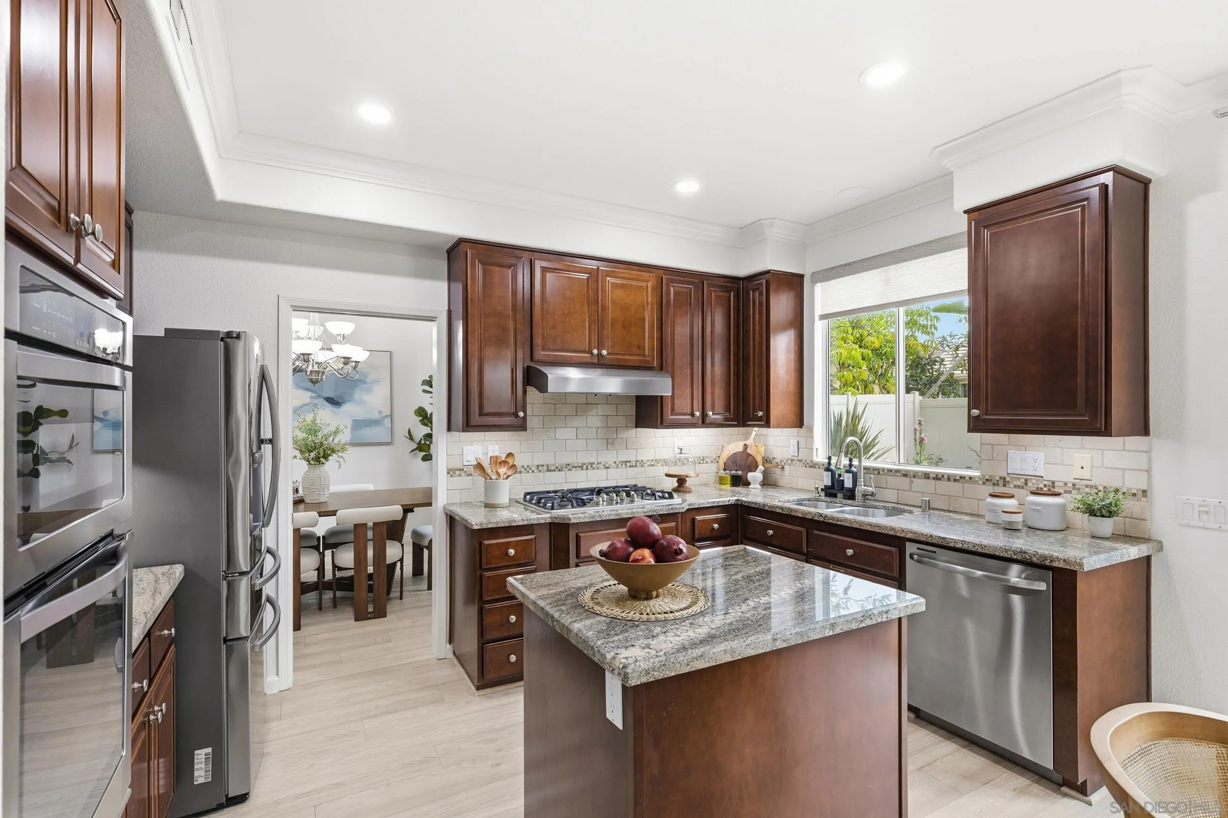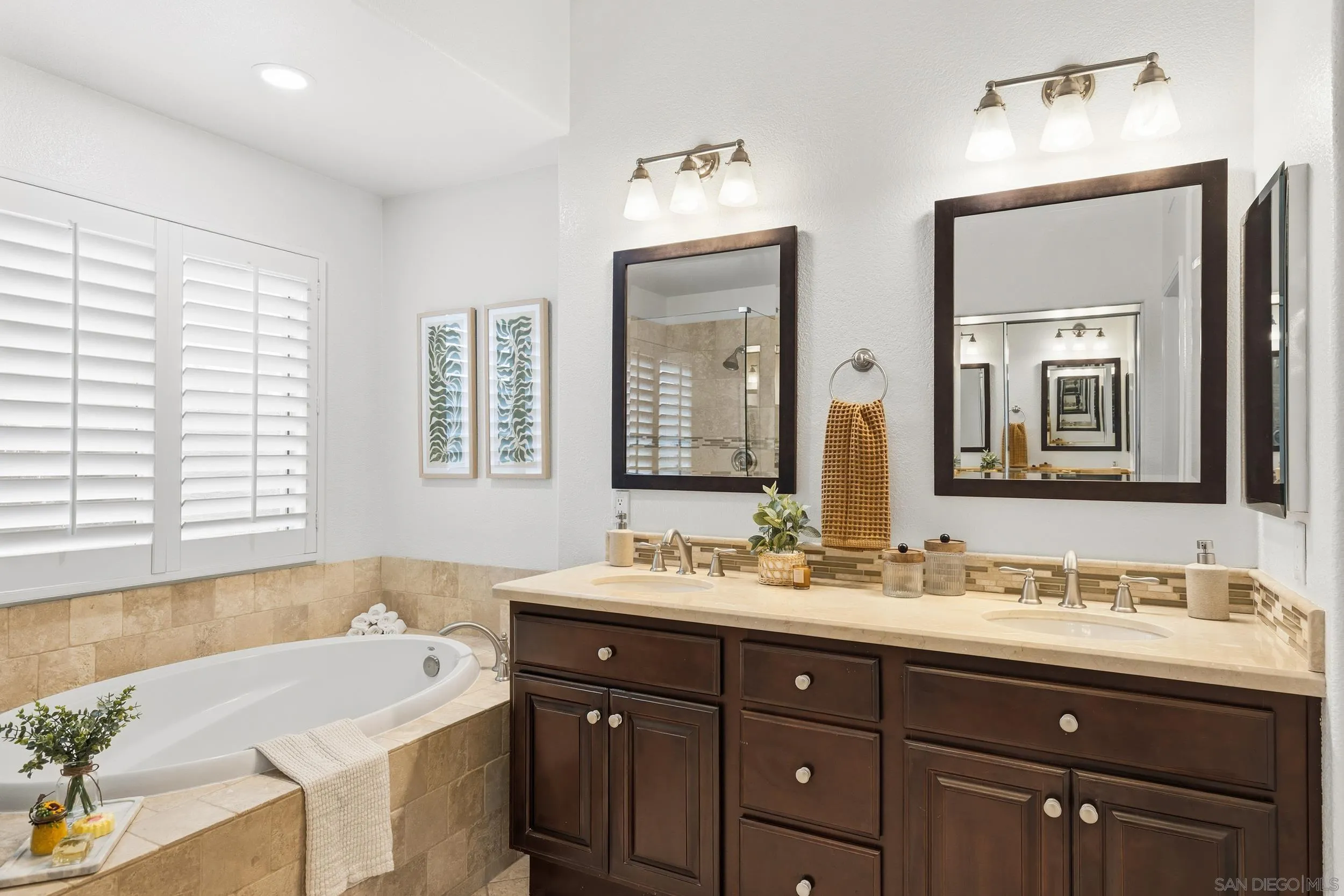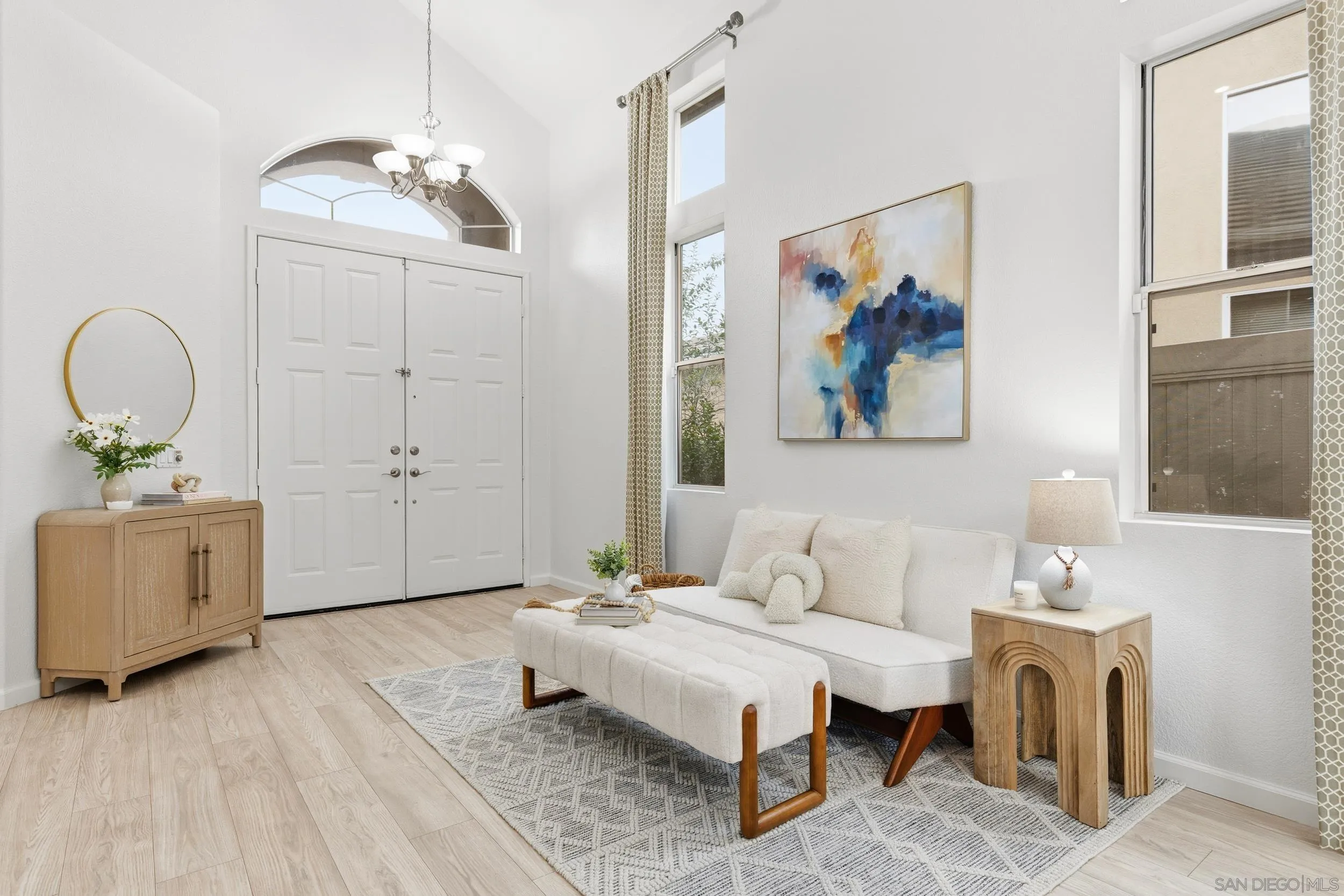 Beautifully upgraded Carmel Valley home featuring fresh paint, new flooring, and high ceilings throughout. This functional layout offers 4 bedrooms + an office and 2.5 bathrooms, with a spacious formal dining room, cozy living and family areas, and a kitchen equipped with stainless steel appliances. The large primary suite includes dual vanities, a walk-in closet, a walk-in shower, and a soaking tub. Upstairs also offers a shared bathroom with double sinks and three additional bedrooms. The well-maintained backyard is perfect for entertaining, featuring a jacuzzi, built-in BBQ + bar, and plenty of space to relax. Further highlights include a 2-car garage with an additional converted workout space and convenient downstairs office. All in a prime location--walking distance to Ashley Falls Elementary, parks, green belts, trails, and shopping, minutes to Del Mar Beach, with easy access to the 56 and 5 freeways. No HOA fees. Mello Roos fee ends next year!