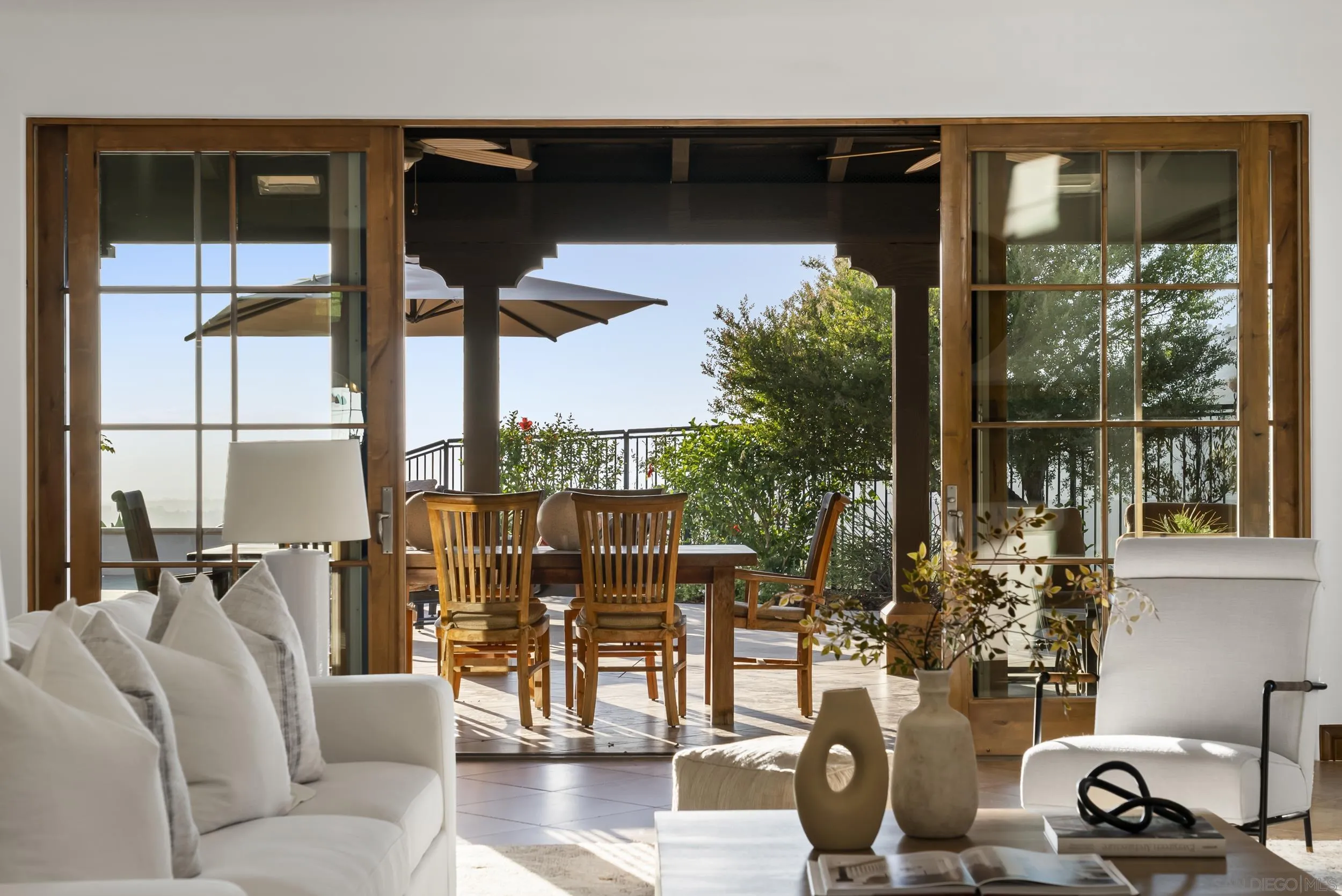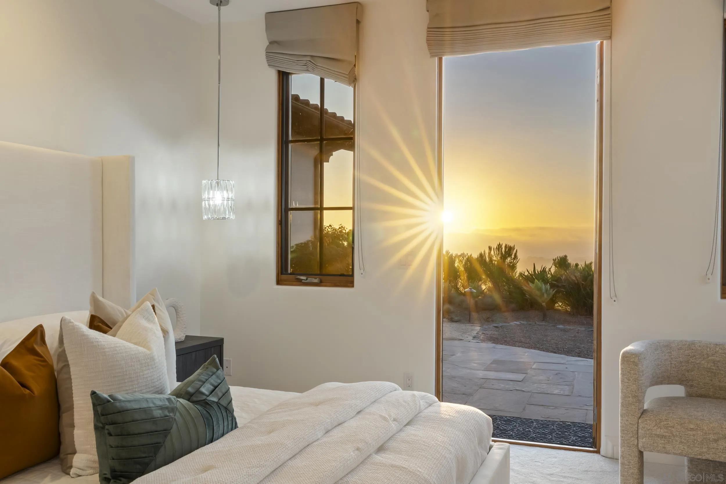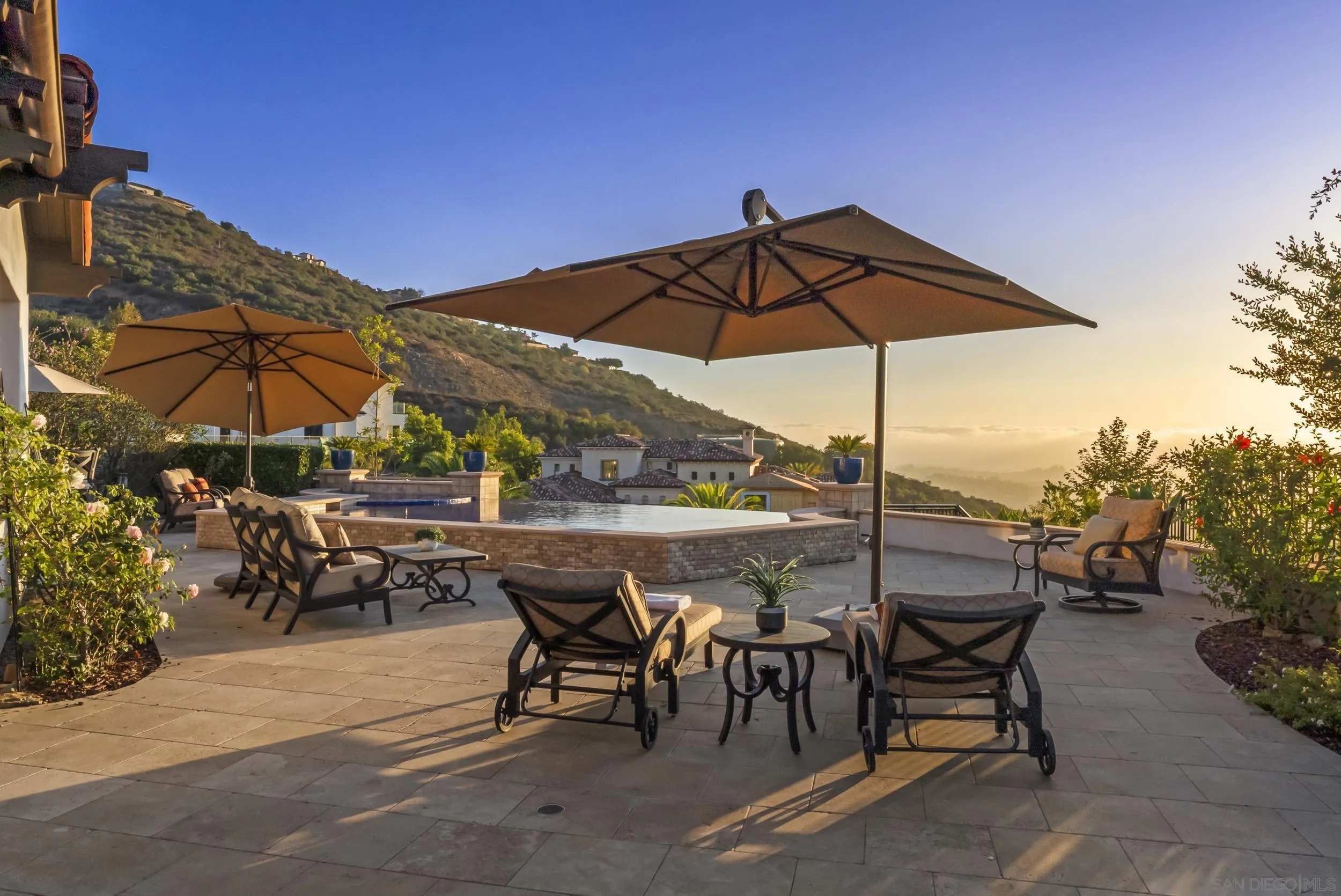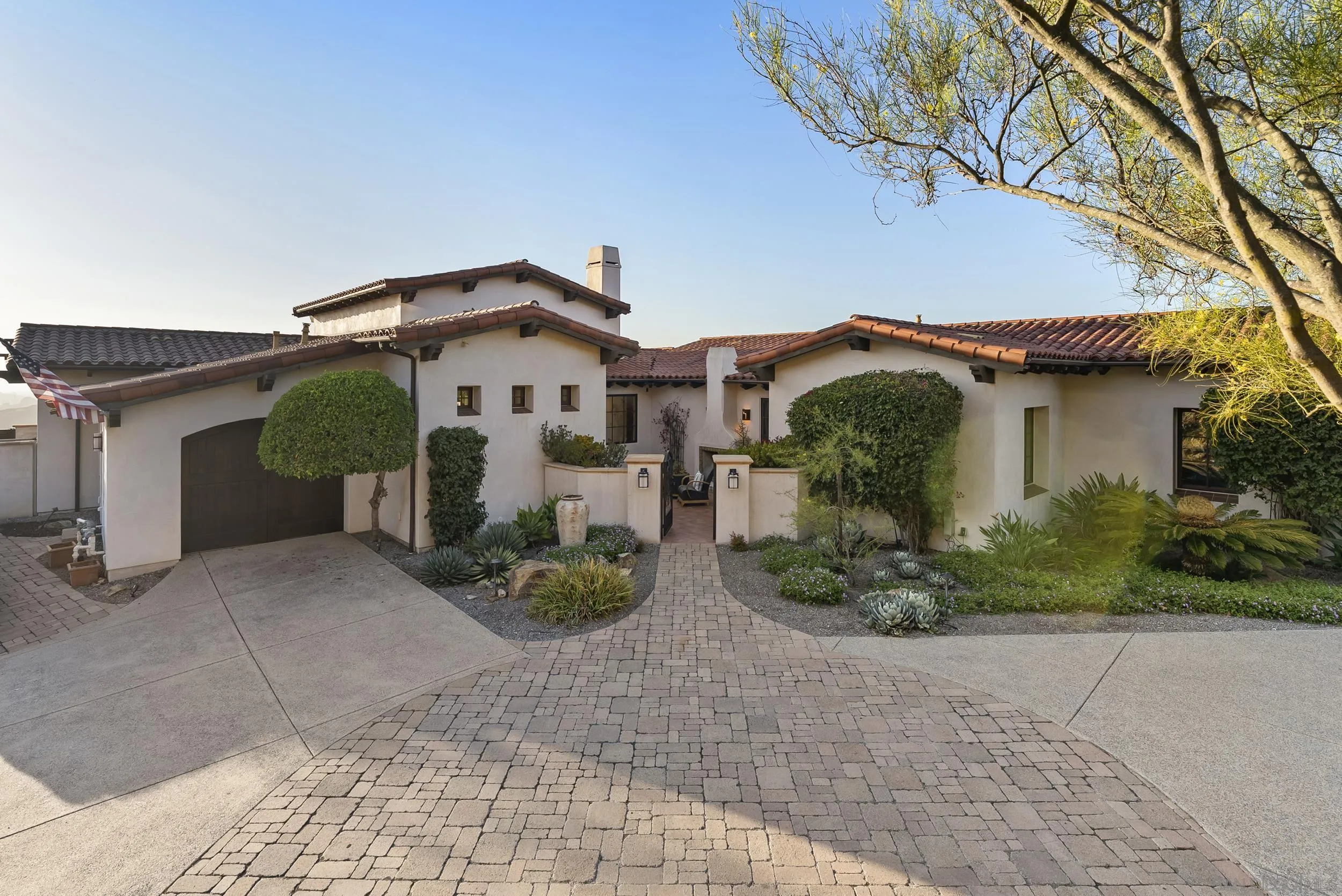 A chic & modern villa of boutique elegance and artful design. Perched atop a serene and private hillside in the prestigious guard-gated community of Cielo, this timeless Santa Barbara-style villa offers resort-style living at its finest. From the moment you step into the enchanting entry courtyard--complete with a cozy fireplace--you're welcomed into a world of refined comfort and effortless indoor-outdoor living. This custom inspired villa showcases a spacious open-concept design that is as tasteful as it is inviting. At the heart of the home, a chef's kitchen with a grand center island flows effortlessly into a sunlit breakfast nook and an expansive great room, creating the perfect setting for both everyday living and effortless entertaining. Thoughtfully designed for connection and comfort, the seamless layout blends timeless architecture with a warm, welcoming ambiance. The private quarters are designed for serenity and comfort. The primary suite serves as a true retreat, offering serene views, and a spa-inspired ambiance. A spacious secondary bedroom within the main residence also enjoys beautiful vistas, thoughtfully positioned away from the main living areas. The boutique-style attached casita provides a separate space for guests or a private home office, blending style with versatility. Showcasing breathtaking panoramic views that stretch in every direction from every room of the property. This custom inspired villa was designed to embrace San Diego's coveted lifestyle, the expansive great room flows seamlessly to a covered outdoor loggia with a fireplace--ideal for...
