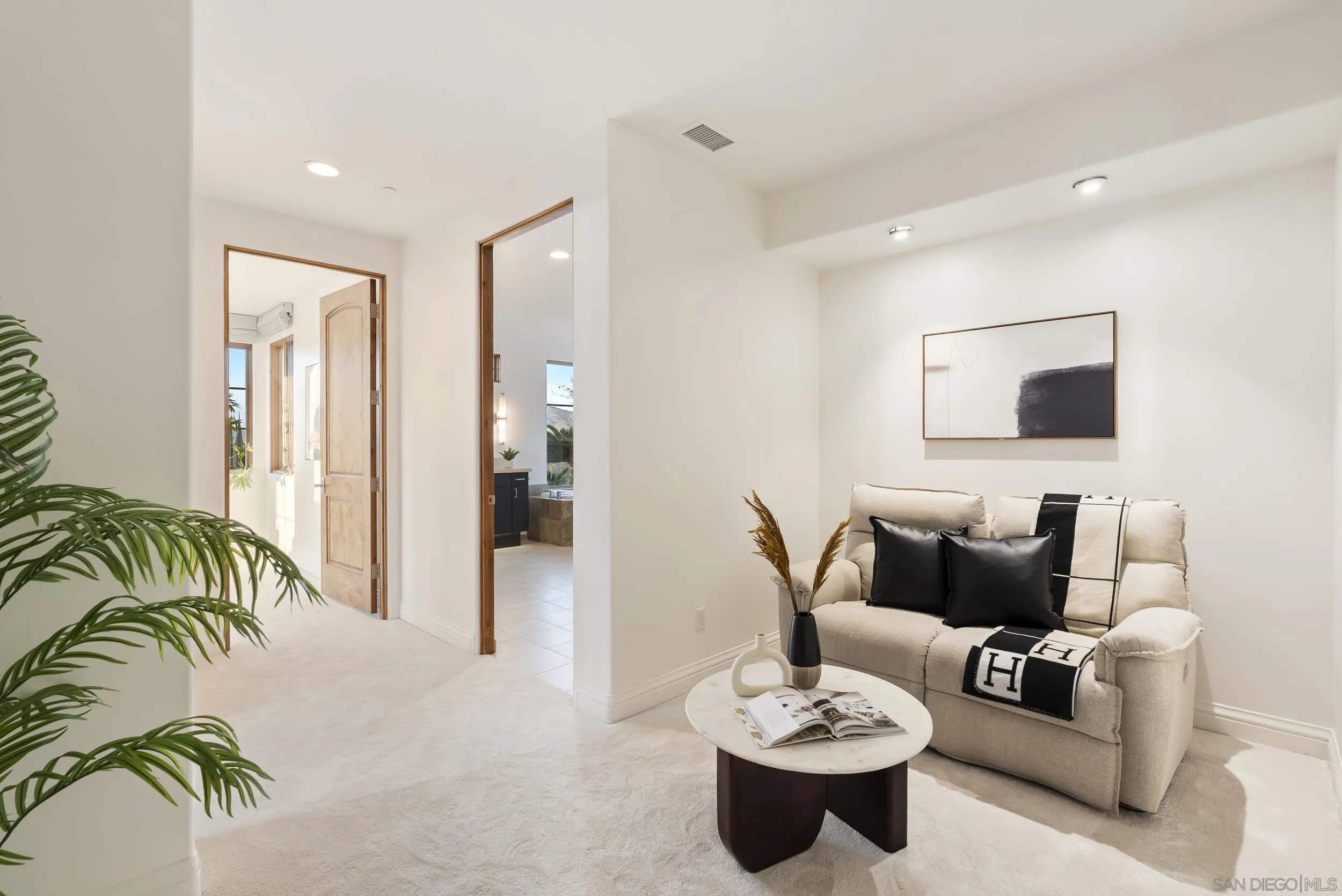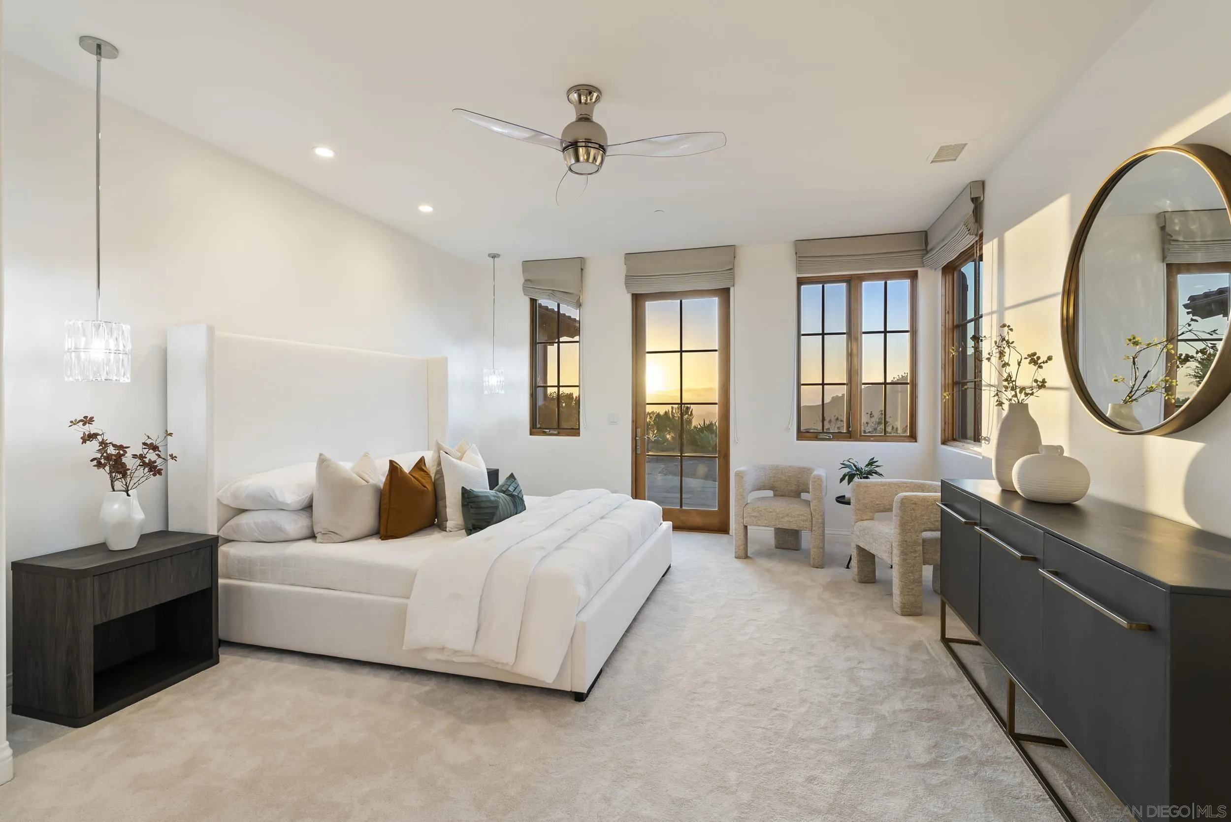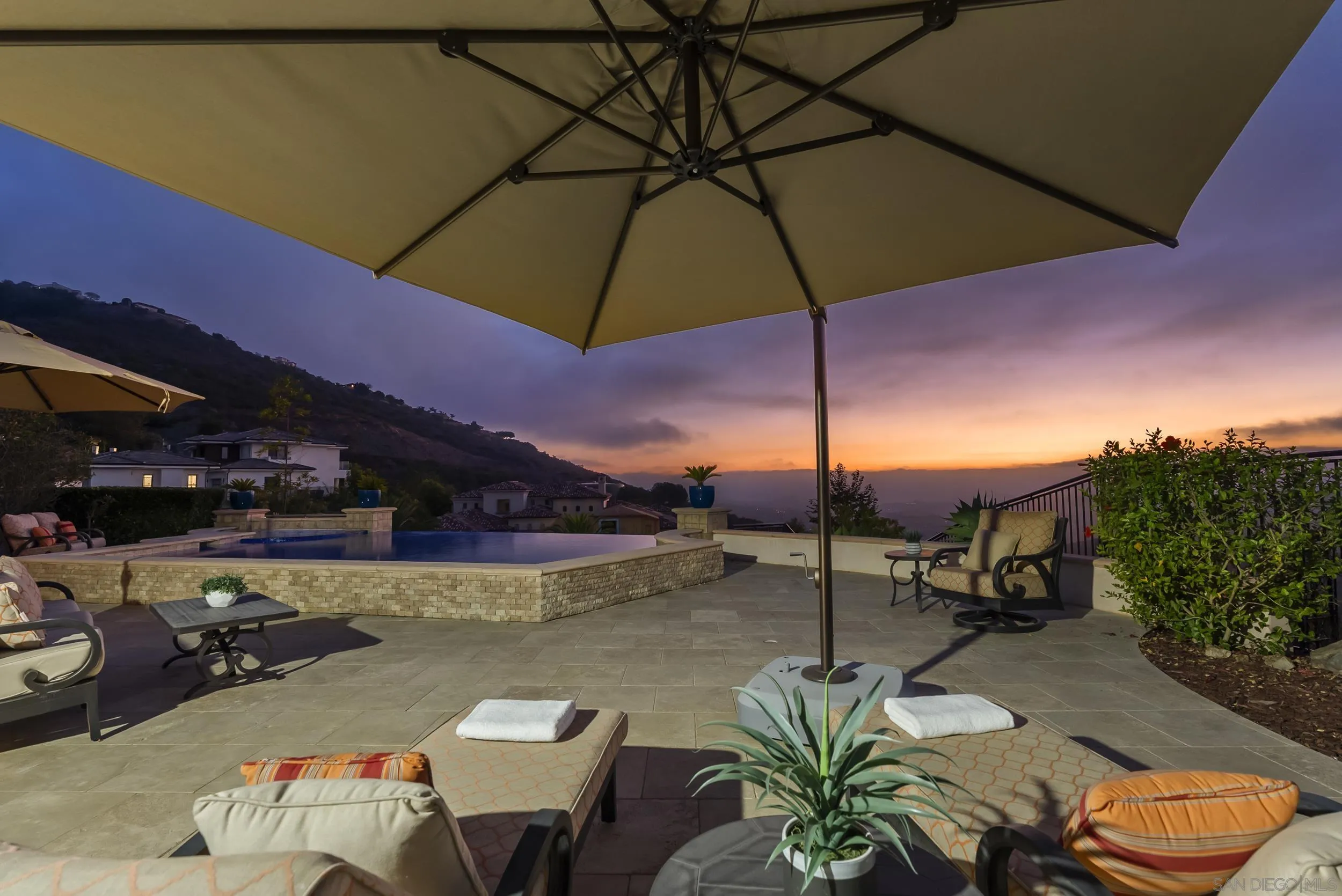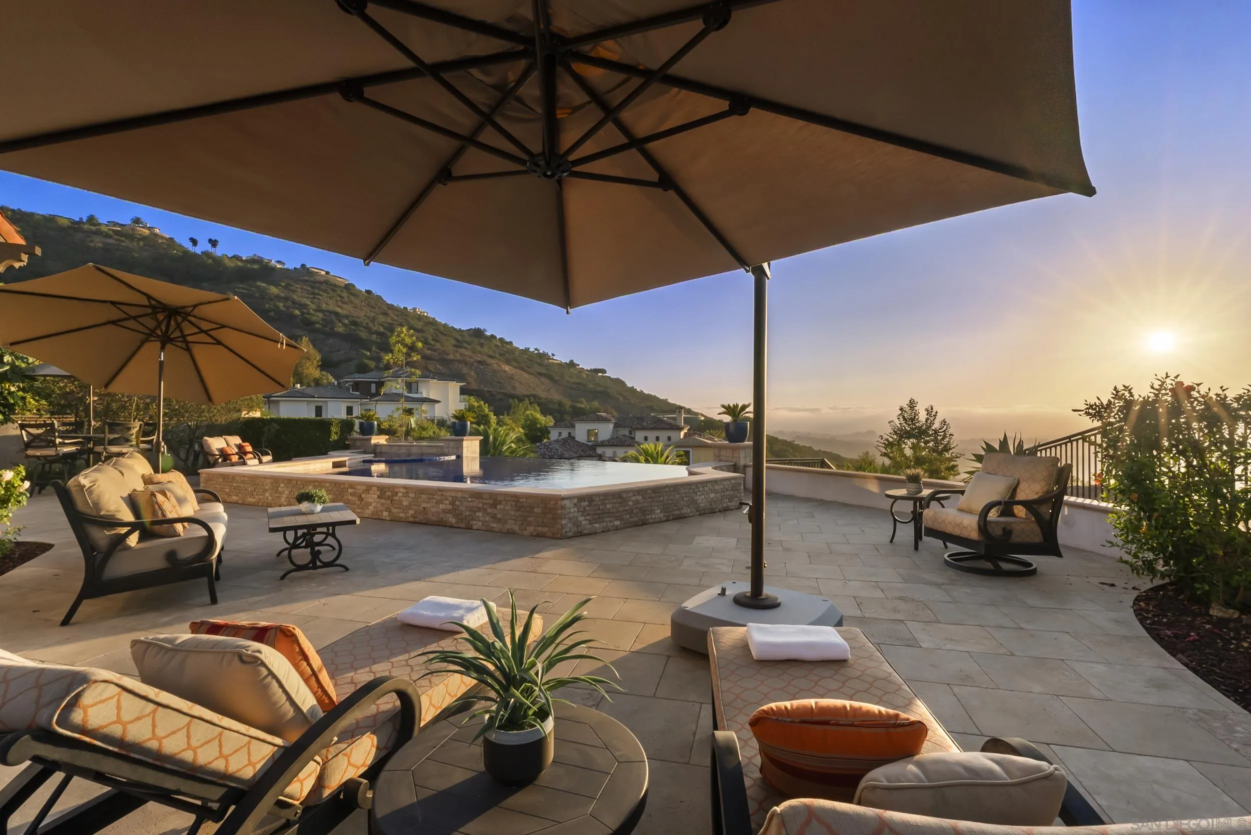 A chic & modern villa of boutique elegance and artful design. Perched atop a serene and private hillside in the prestigious guard-gated community of Cielo, this timeless Santa Barbara-style villa offers resort-style living at its finest. From the moment you step into the enchanting entry courtyard--complete with a cozy fireplace--you're welcomed into a world of refined comfort and effortless indoor-outdoor living. This custom inspired villa showcases a spacious open-concept design that is as tasteful as it is inviting. At the heart of the home, a chef's kitchen with a grand center island flows effortlessly into a sunlit breakfast nook and an expansive great room, creating the perfect setting for both everyday living and effortless entertaining. Thoughtfully designed for connection and comfort, the seamless layout blends timeless architecture with a warm, welcoming ambiance. The private quarters are designed for serenity and comfort. The primary suite serves as a true retreat, offering serene views, and a spa-inspired ambiance. A spacious secondary bedroom within the main residence also enjoys beautiful vistas, thoughtfully positioned away from the main living areas. The boutique-style attached casita provides a separate space for guests or a private home office, blending style with versatility. Showcasing breathtaking panoramic views that stretch in every direction from every room of the property. This custom inspired villa was designed to embrace San Diego's coveted lifestyle, the expansive great room flows seamlessly to a covered outdoor loggia with a fireplace--ideal for...