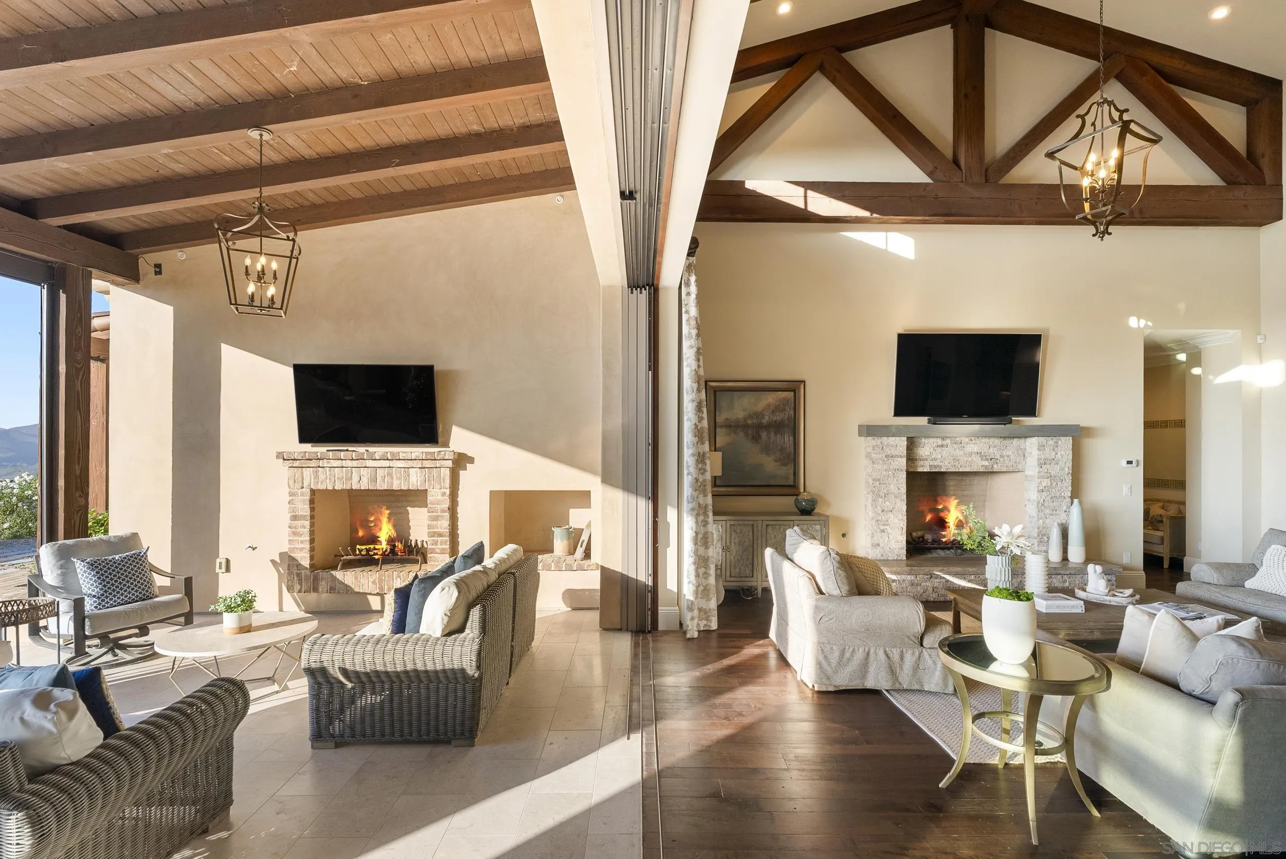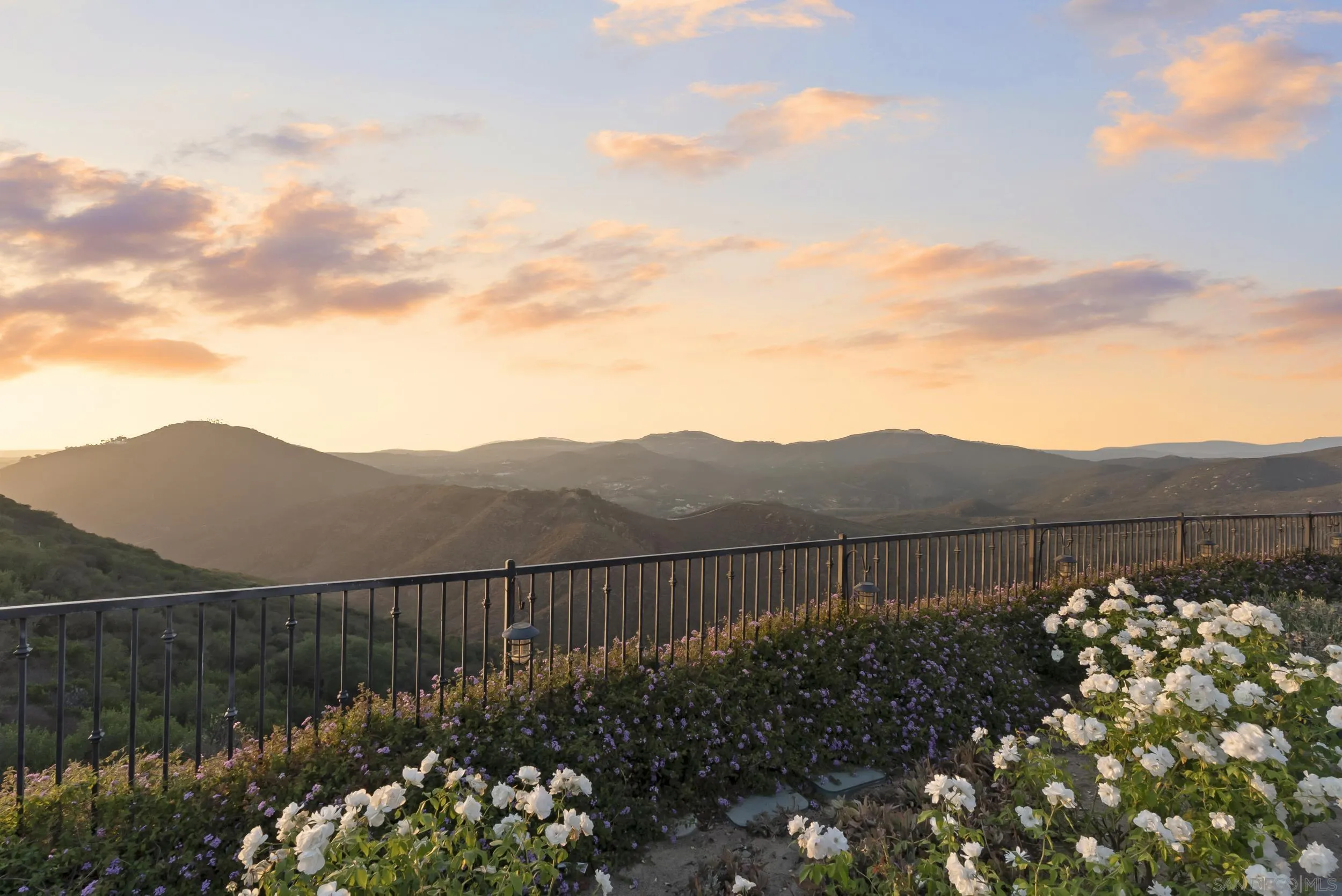 Intentional Living & Artfully Designed Mediterranean Estate! Seller will entertain offers between $3,950,000 to $4,150,000. Experience sophistication and modern elegance in this nearly new (2017) single-level custom estate within the prestigious guard-gated community of Cielo, Rancho Santa Fe. Perched at one of the highest points along the San Diego coast, this home offers panoramic mountain-to-ocean views and exceptional privacy. Featuring 4 bedrooms, 4 full and 2 half baths, plus an executive office/media room, this open-concept design showcases a spacious great room with disappearing glass doors, exposed antique beams, a stunning fireplace, and an entertainer's wet bar with walk-in wine cellar. The chef's kitchen boasts quartz countertops, a grand center island, walk-in pantry, and top-tier appliances. The primary suite is a serene retreat with patio access, a spa-style bath with soaking tub, dual vanities, and a boutique-style walk-in closet. The resort-inspired outdoor space features a vanishing-edge pool and spa, fireplace lounge with TV, and a fully equipped outdoor kitchen with Lynx BBQ and granite bar seating--ideal for al fresco dining and sunset gatherings. Sustainably designed, the home runs on 100% solar power and features drought-conscious landscaping. Additional highlights include a 3-car garage with mahogany doors and a finished loft/attic. Enjoy Cielo's luxury amenities--clubhouse, gym, pools, tennis, pickleball, playgrounds, and more--all within the acclaimed Rancho Santa Fe School District (Roger Rowe).