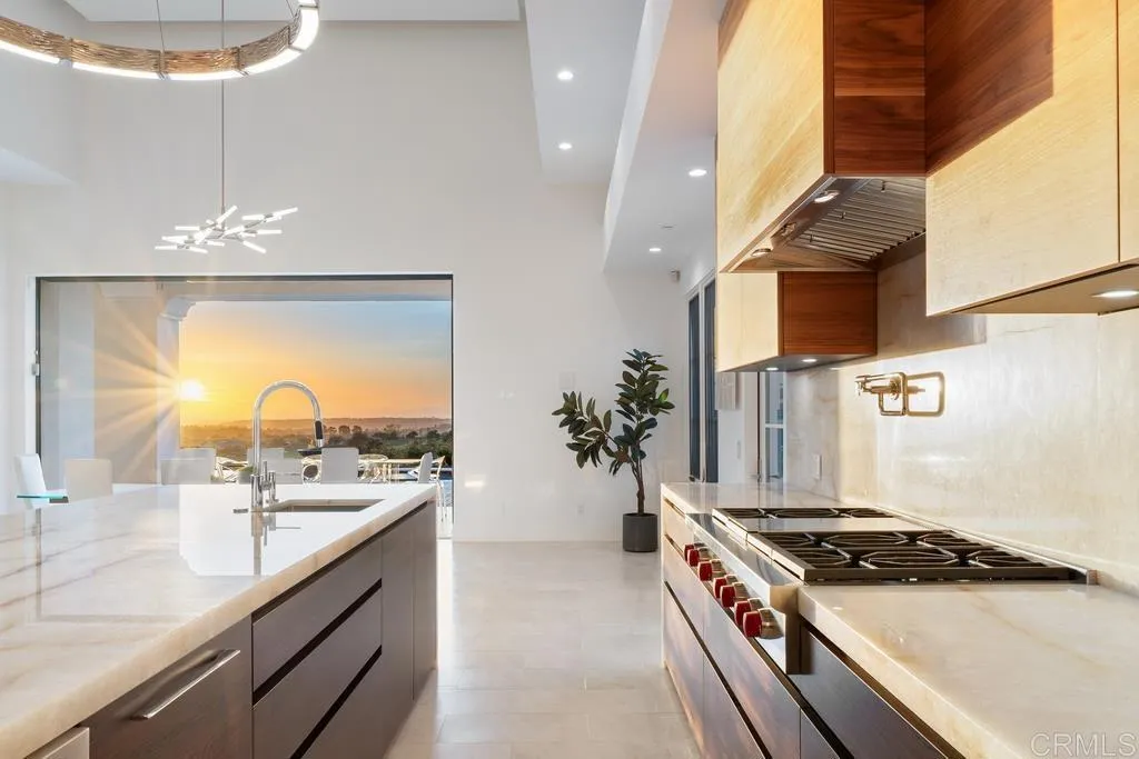 Welcome to an exceptional modern retreat situated in the exclusive guard-gated Santaluz golf community. This bespoke contemporary residence is ideally situated at the pinnacle of a tranquil cul-de-sac, providing breathtaking 180-degree vistas of the Ocean, Lake, and the expansive Golf Course landscape. Step inside to discover a meticulously crafted residence, where every detail is thoughtfully curated to evoke luxury and sophistication. From the solid Mahogany doors to the awe-inspiring chandelier, the home boasts an array of exquisite designer touches. The seamless open-concept floorplan with volume ceilings creates an inviting atmosphere, ideal for entertaining guests in the expansive Great Room and Gourmet Kitchen, complete with Onyx stone countertops, Wolf appliances, and a custom wet bar. Enhancing the indoor-outdoor living experience are motorized glass panels that effortlessly transition to a covered loggia adorned with a fireplace, offering captivating panoramic views of the surrounding landscape. Step outside to discover resort-style amenities, including a saltwater heated infinity pool and Jacuzzi, an inviting outdoor fire pit, and a pool casita equipped with a kitchen and BBQ. Retreat to the Master Suite, a sanctuary boasting a private viewing deck and an oversized bathroom suite adorned with luxurious mother-of-pearl accents. Additional property amenities include a sauna, elevator, temperature-controlled wine room, a dedicated dog and cat room with heated floors, and a home theater, where a color-changing sky ceiling sets the stage for unforgettable entertainmen