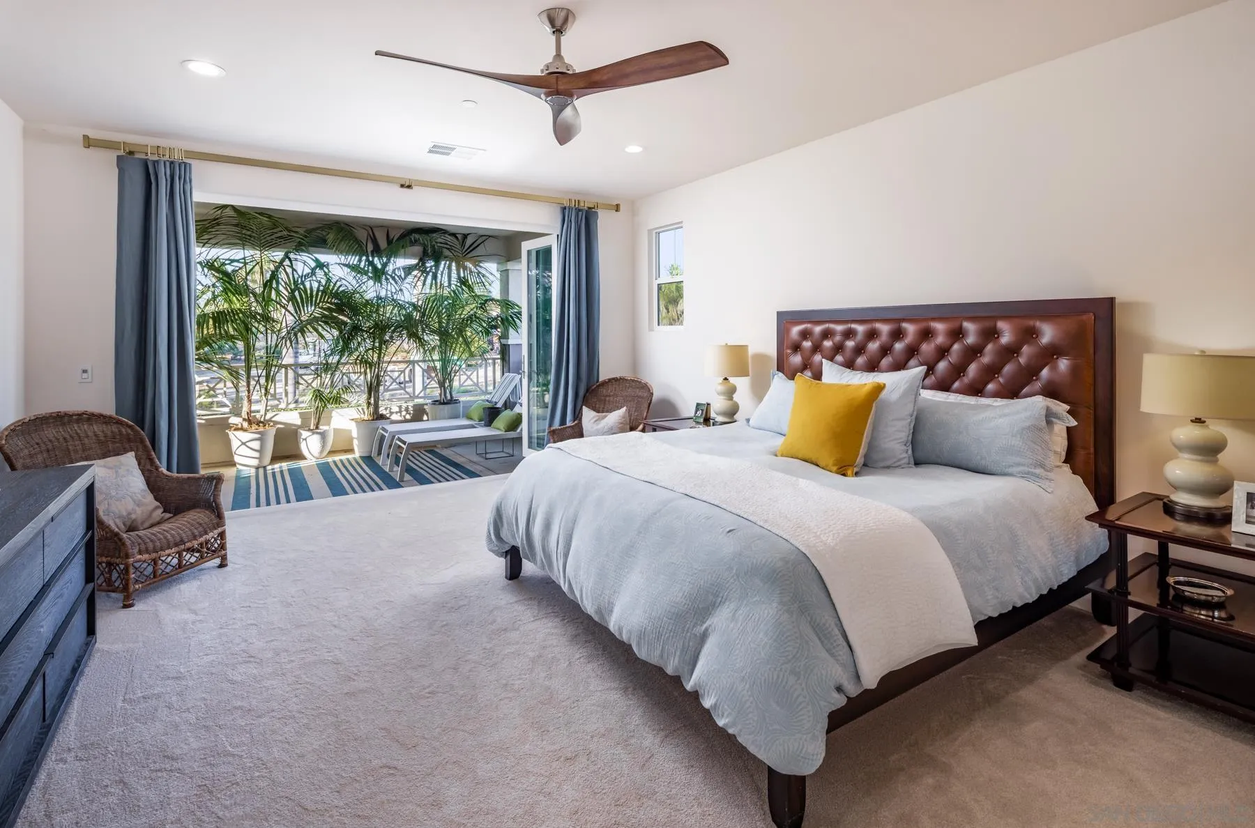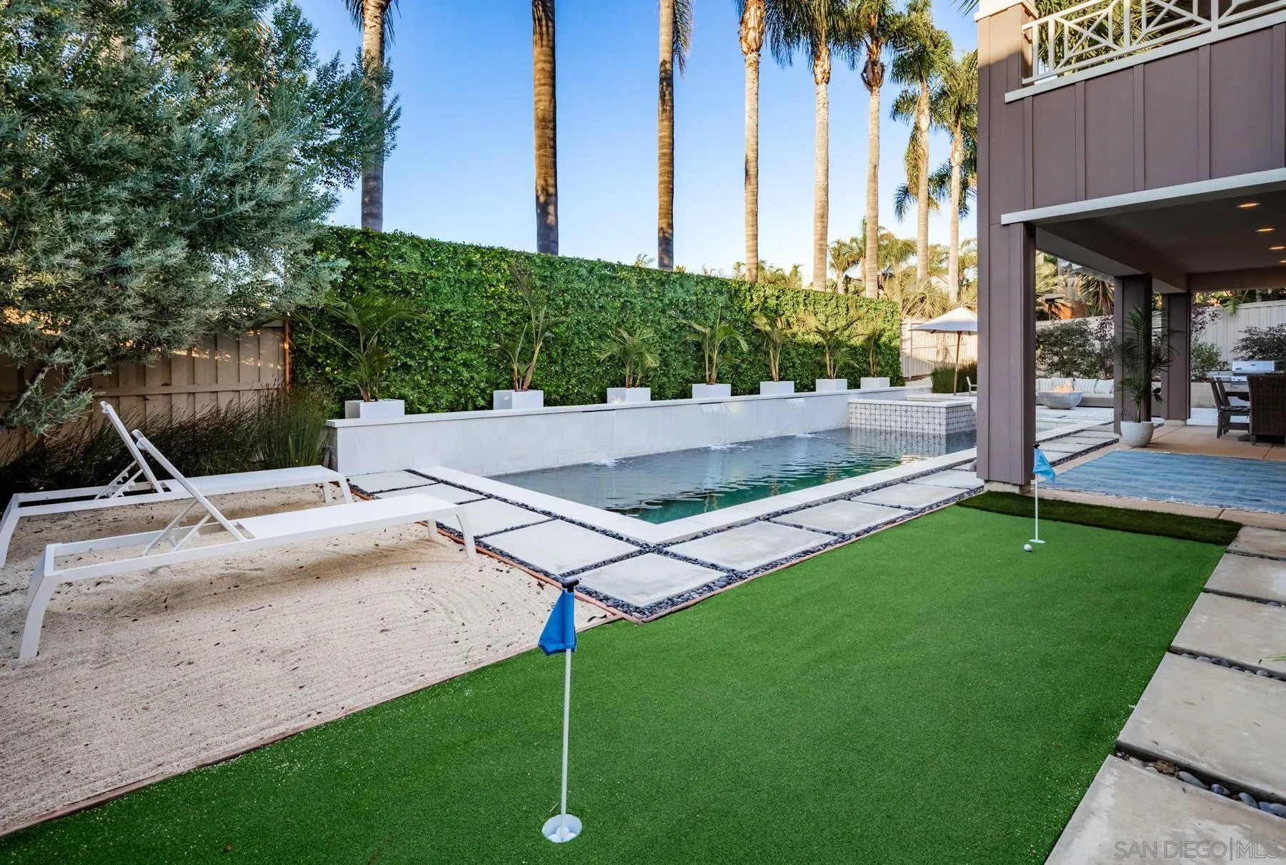 Discover modern luxury in this exquisite 2020 Shea Homes residence, nestled in the prestigious Alia community at the end of a private cul-de-sac. This 5-bedroom, 4.5-bathroom masterpiece seamlessly blends contemporary design with coastal charm, featuring expansive bi-folding doors that open to a private oasis complete with a low maintenance landscape, pool, spa, water features and custom putting green. The gourmet kitchen shines with the GE Monogram Statement Collection and a striking Calacatta Gold Silestone Quartz island, while the primary suite offers a private balcony and a spa-inspired ensuite with custom Jeffrey Court tile. Designed for both intimate living and grand entertaining, the home includes a main-level bedroom suite, a great room with built-in surround sound, custom cabinetry, and energy-efficient owned solar panels. Just a mile from Leucadia beaches and coastal dining, and close to Fox Point Farms and Encinitas Ranch Golf Course, it offers easy freeway access and proximity to top-rated San Dieguito schools. This is your opportunity to own a turnkey luxury retreat in one of North County's most sought-after communities. ***